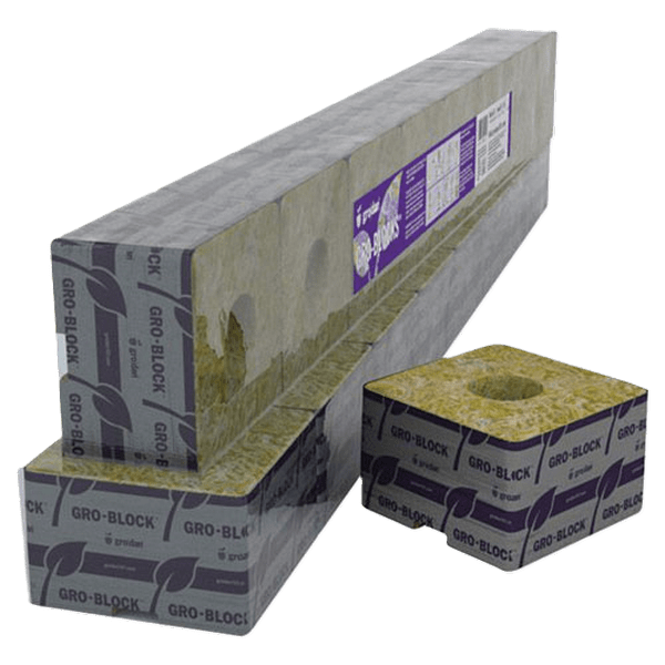 Each Grodan Grow Rockwool Blocks are 4″ x 4″ x 2.5″ high cubes are ideal to drop the A-OK Starter Plugs™ into