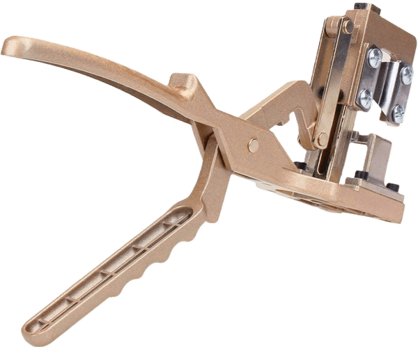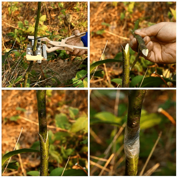 Step 1: Hold the grafting material in the graft tool and squeeze the handle to make the cut, repeat this step to cut the stem from the donor plant. Make sure to cut a groove in the plant.