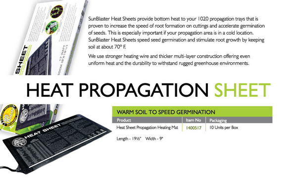 SunBlaster Heat Sheets provide bottom heat to your 1020 propagation trays that is proven to increase the speed of root formation on cuttings and accelerate growth and germination