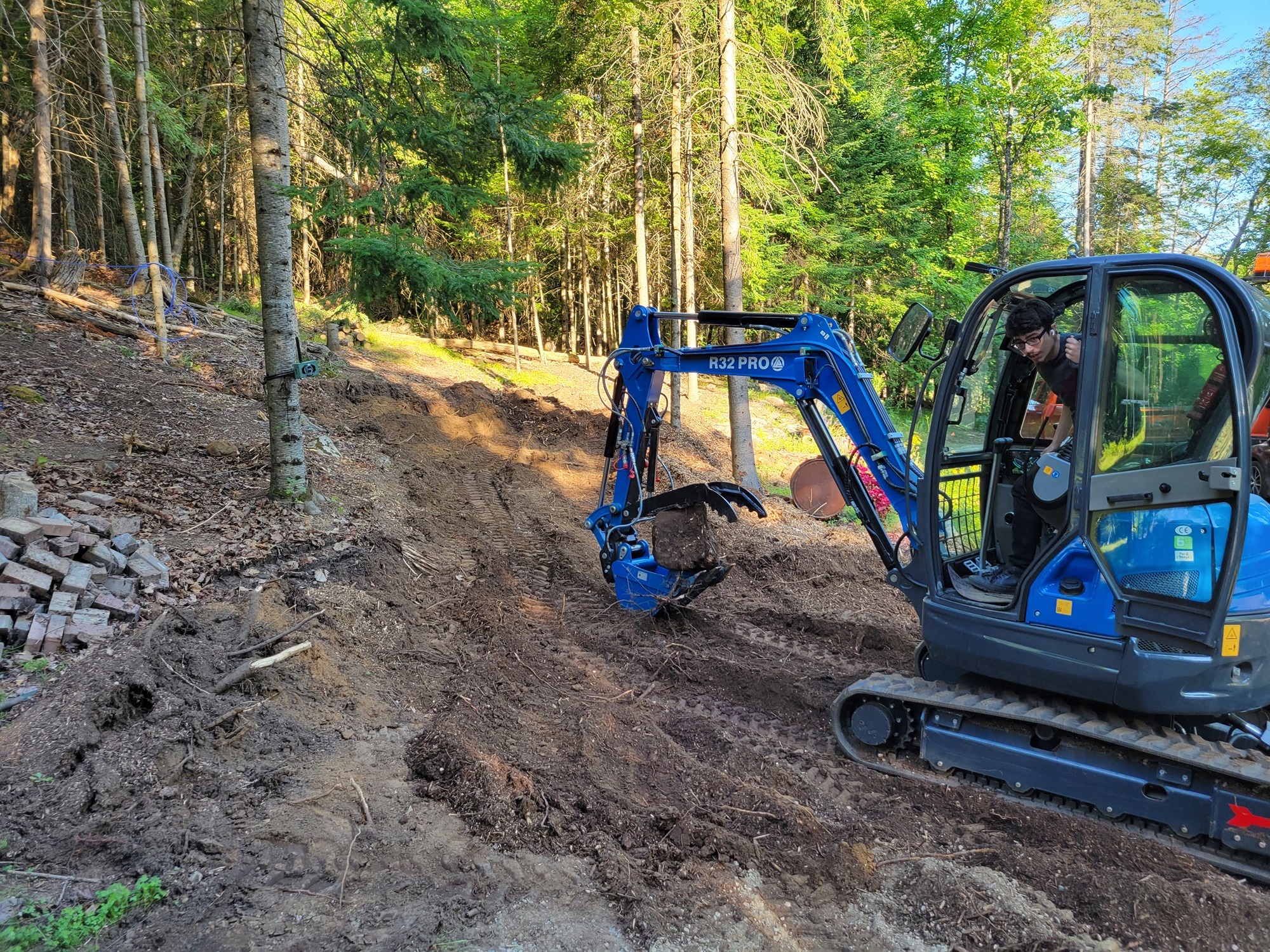 Our hydraulic breaker and excavator thumb lets us take on the tough stuff — smashing and cracking boulders, concrete pads, and stubborn slabs. Once they’re broken, we can dig them out, haul them, or roll them off your property.